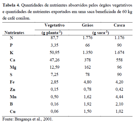 Para cafeeiros conilon no Brasil, não existem estudos que subsidiem recomendação segura destes nutrientes em cobertura, durante a fase de formação da lavoura.