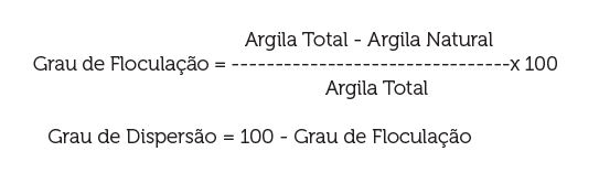 Graus de floculação e grau de dispersão (BRADY, 1989; MARTINS, 1985; EMBRAPA SOLOS, 2011)