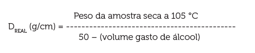 Densidades real ou da partícula (BRADY, 1989; MARTINS, 1985; EMBRAPA SOLOS, 2011)