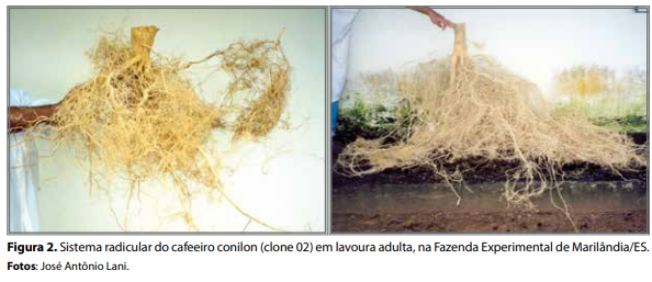 Apesar de existirem relatos na literatura de que a maior robustez do café robusta esteja associada à maior extensão e eficiência de seu sistema radicular, tanto na absorção de água como de nutrientes, o sistema radicular do café conilon apresenta alta plasticidade em resposta a diversos fatores. Logo, sua morfologia, arquitetura, profundidade e distribuição no solo, assim como ocorre no café arábica, pode depender da idade da planta (BRAGANÇA, 2005), do tipo de irrigação e do manejo nutricional adotados (BARRETO et al., 2006), da relação entre fonte e dreno (ALVES et al., 2011), do método de formação de mudas, i.e., se propagadas vegetativamente ou a partir de sementes (JESUS; CARVALHO; SOARES, 2006; PARTELLI et al., 2006, 2014b; SILVA et al., 2010), das características químicas do solo (MOTA et al., 2006), da calagem em subsuperfície (RODRIGUES et al., 2001), das práticas culturais (RENA; GUIMARÃES, 2000; RENA; DaMATTA, 2002), da competição e das espécies de plantas daninhas (RONCHI; TERRA; SILVA, 2007), da densidade de plantio (CASSIDY; KUMAR, 1984; RONCHI et al., 2015b); e do material genético (ALFONSI et al., 2005; BRAGANÇA, 2005; PINHEIRO et al., 2005; SILVA et al., 2010; COVRE et al.,2013; RONCHI et al., 2015b).