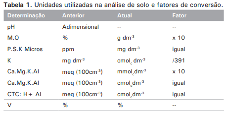Ao receber sua análise de solo, verifique em quais unidades de medida estão os resultados. Segundo a EMBRAPA, os resultados da análise de solo é utilizando o Sistema Internacional de Unidades, conforme a tabela abaixo: