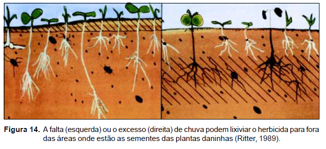 Assim, a lixiviação auxilia na incorporação do herbicida, sem o que este permaneceria na superfície do solo, permitindo que as sementes de plantas daninhas germinassem abaixo da camada tratada.
