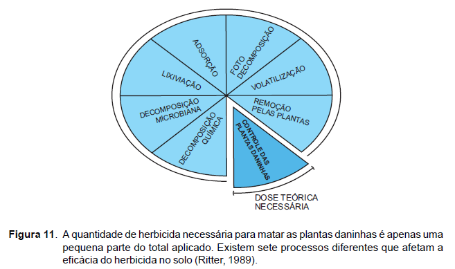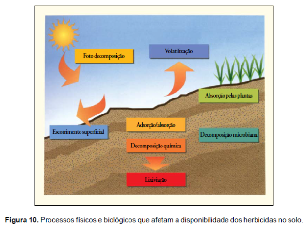 Os herbicidas aplicados ao solo estão sujeitos a vários processos físicos e biológicos, os quais dificultam a predição de suas eficácias e níveis de resíduos (Figura 10).