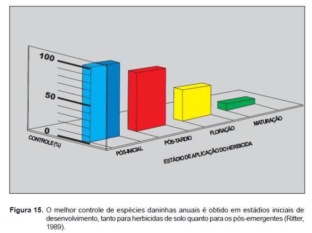 O estádio de desenvolvimento e suas características são fatores importantes na seletividade dos herbicidas e no controle de plantas daninhas. Em geral, as plantas daninhas são mais fáceis de controlar nos estádios iniciais de desenvolvimento (Figura 15).