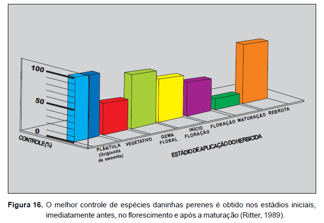 Aparentemente, as espécies perenes apresentam três estádios mais adequados (ótimos) para serem controladas (Figura 16) que são: