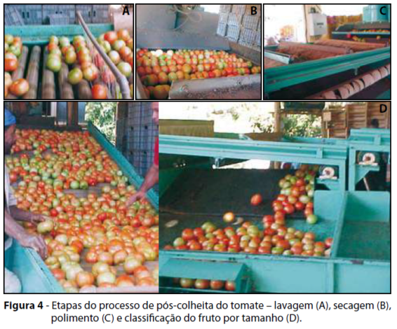 Dois processos podem ser adotados para a lavagem do tomate: imersão dos frutos em água ou aspersão. Em ambos os casos a água deverá apresentar padrão de qualidade para essa finalidade.