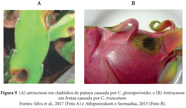 Na pitaya, uma porta de entrada é o contato do resto floral com o fruto, o qual por ter microclima mais úmido e justamente na interface do fruto, favorece a penetração do patógeno.