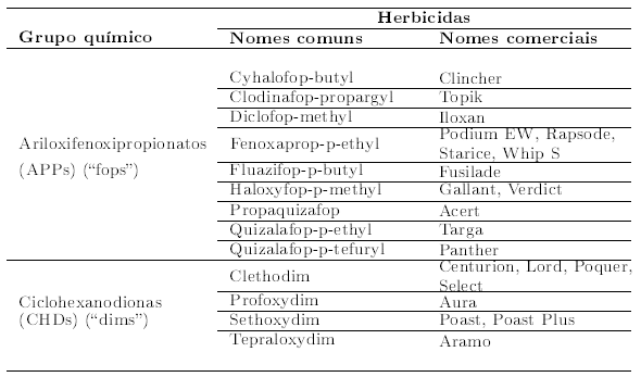 1. São considerados herbicidas sistêmicos, controlando tanto gramíneas anuais quanto perenes, embora a tolerância varie entre espécies. Espécies não gramíneas (tanto plantas daninhas quanto culturas) são normalmente bastante tolerantes;