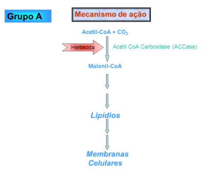 Em 1987 foi demonstrado que o local de ação destes herbicidas era a acetil-coenzima A carboxilase (ACCase).