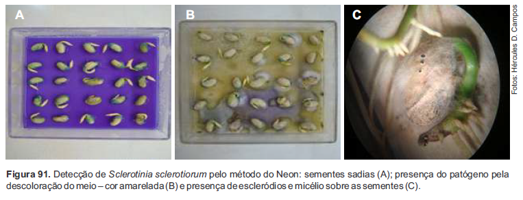 A seguir, serão descritos três métodos específicos para a detecção de Sclerotinia sclerotiorum em sementes de soja.