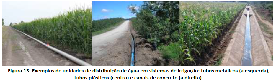 As distâncias entre as fontes de água e os locais a serem irrigados precisam ser vencidos por canais ou sistemas de tubulações (Figura 13).