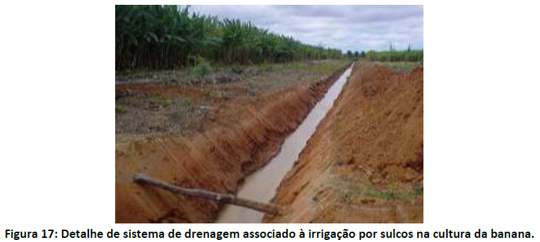 A utilização de sistemas de drenagem associado ao emprego da irrigação é mais frequente em propriedades que fazem uso de sistemas de irrigação por superfície, onde o volume escoado superficialmente ou percolado é elevado quando comparado com outros sistemas de irrigação (Figura 17).