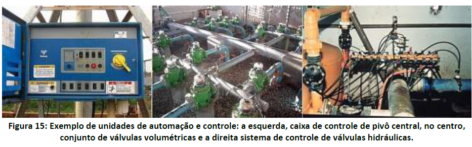 Com a evolução dos sistemas de irrigação e com a necessidade cada vez maior de se economizar os recursos hídricos e reduzir a mão de obra utilizados nessa prática, vêm se intensificando nos últimos anos o emprego de sistemas de automação e controle (Figura 15).