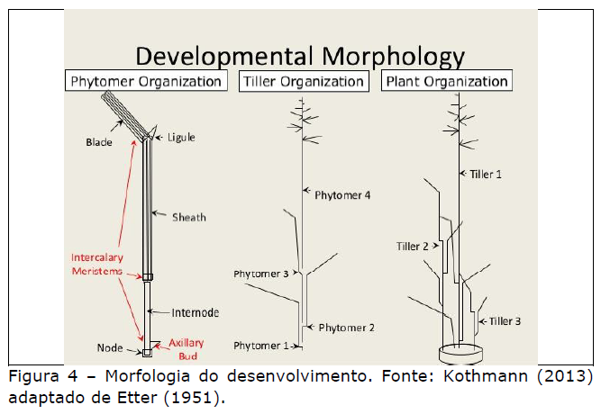Nesse sentido, o desenvolvimento morfológico de uma planta consiste em uma sequência de eventos interativos dentro de ou entre fitômeros interligados, de forma que a arquitetura de um perfilho é determinada pelo tamanho, número e arranjo espacial de seus fitômeros.