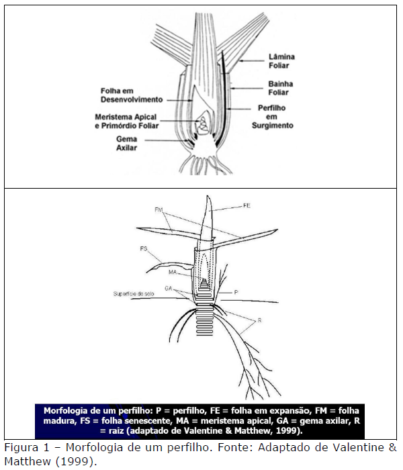 A estrutura morfológica das gramíneas é muito similar entre as espécies. O perfilho é considerado a unidade de crescimento (unidade vegetativa) das gramíneas forrageiras.