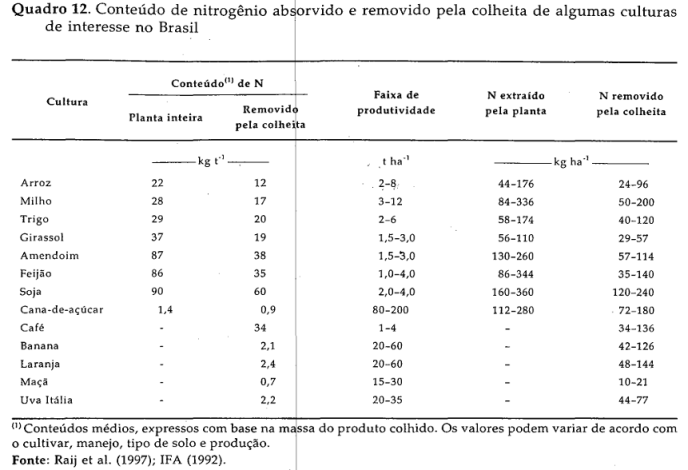 A escolha da fonte de N e o manejo da adubação devem visar a minimização dessas perdas, aumentando a sustentabilidade do sistema produtivo.