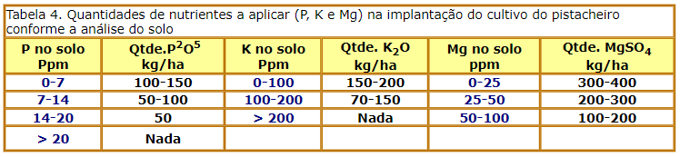 A adubação do pistache deve ser feita com base em análises de solo. No geral, é necessário um equilíbrio adequado de nutrientes, com foco em nitrogênio, fósforo e potássio.