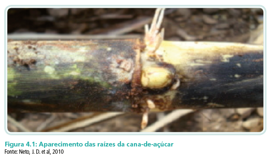 Após o plantio, ocorrendo condições ambientais favoráveis (principalmente de temperatura e umidade), iniciam-se atividades nos primórdios radiculares e no poro da gema, culminando com o desenvolvimento das raízes do tolete e com a emergência de um pequeno broto na superfície do solo, respectivamente.