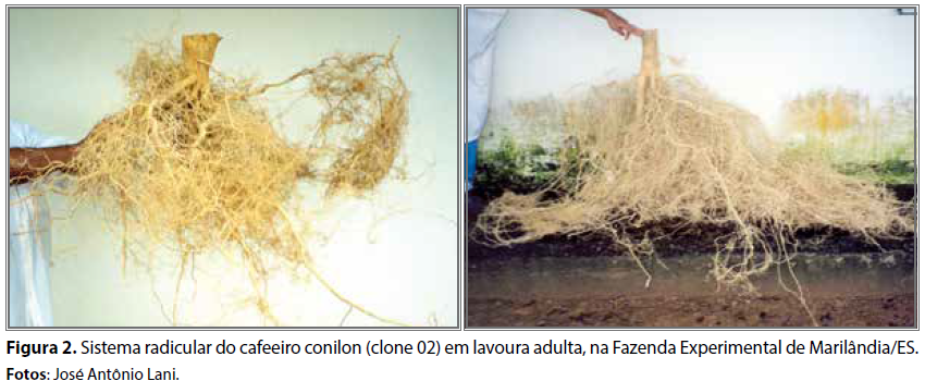 Apesar de existirem relatos na literatura de que a maior robustez do café robusta esteja associada à maior extensão e eficiência de seu sistema radicular, tanto na absorção de água como de nutrientes, o sistema radicular do café conilon apresenta alta plasticidade em resposta a diversos fatores. Logo, sua morfologia, arquitetura, profundidade e distribuição no solo, assim como ocorre no café arábica, pode depender da idade da planta (BRAGANÇA, 2005), do tipo de irrigação e do manejo nutricional adotados (BARRETO et al., 2006), da relação entre fonte e dreno (ALVES et al., 2011), do método de formação de mudas, i.e., se propagadas vegetativamente ou a partir de sementes (JESUS; CARVALHO; SOARES, 2006; PARTELLI et al., 2006, 2014b; SILVA et al., 2010), das características químicas do solo (MOTA et al., 2006), da calagem em subsuperfície (RODRIGUES et al., 2001), das práticas culturais (RENA; GUIMARÃES, 2000; RENA; DaMATTA, 2002), da competição e das espécies de plantas daninhas (RONCHI; TERRA; SILVA, 2007), da densidade de plantio (CASSIDY; KUMAR, 1984; RONCHI et al., 2015b); e do material genético (ALFONSI et al., 2005; BRAGANÇA, 2005; PINHEIRO et al., 2005; SILVA et al., 2010; COVRE et al., 2013; RONCHI et al., 2015b).