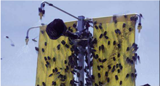 Figura 1. Forma alternativa de controle da cigarra com armadilha sonora e cortina de inseticida Ecospray F-6. Fonte: Portal Biossistemas, 2011.
