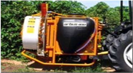 Para a regulagem do pulverizador turbo atomizador (Figura 2) deve-se direcionar o equipamento para a área a ser tratada, pois a topografia do terreno, o espaçamento da cultura, a altura das plantas vão influenciar na calibração do equipamento. A disposição das pontas deve ser distribuída de forma que 2/3 do volume a ser aplicado seja direcionado para a região superior da copa da planta (JUNIOR, 2011).