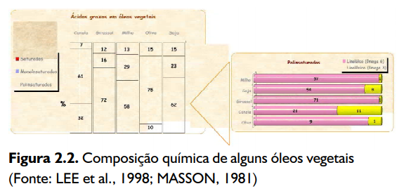 A composição do óleo presente no gérmen do milho é distinta da dos outros óleos vegetais quanto aos percentuais de ácidos graxos saturados, monoinsaturados e polinsaturados (Figura 2.2).