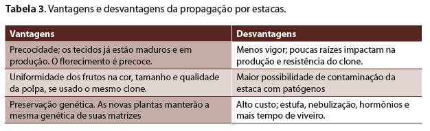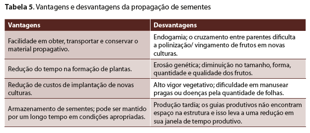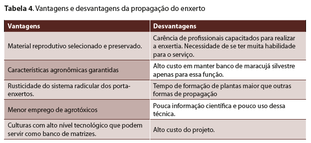 Nas Tabelas 3, 4 e 5 foram apresentadas, como síntese, as vantagens e desvantagens de cada tipo de propagação de maracujá, sendo que às vezes esse também é o caso de outras culturas.