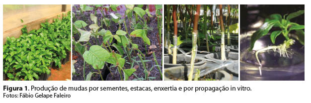 Na Figura 1, há fotos da produção de sementes por sementes, corte, enxerto e propagação in vitro.