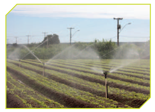 Plantio convencional a campo aberto em canteiros com o uso do sistema de irrigação por aspersão realizado durante ano todo. Os canteiros geralmente são de 1m de largura e comporta três fileiras longitudinais, com espaçamento de 30 cm entre plantas. Este sistema exige mais mão-de-obra para capinar e predispõe maior incidência de doenças de solo. Entretanto, no período da seca e fria, a irrigação por aspersão, minimiza a incidência de pulgões transmissores de virose, a principal praga deste período.