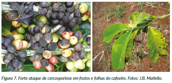 Por outro lado, períodos de seca e calor excessivo oferecem um cenário desfavorável para o desenvolvimento de algumas doenças do cafeeiro, tais como Pseudomonas, a mancha de phoma e a ferrugem, mas pode criar condições propícias para outras como Cercospora.