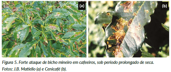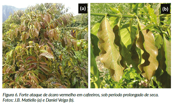 Assim, a temperatura é determinante nas variações sazonais e regionais dos níveis de infestação das principais pragas do cafeeiro no Brasil (a broca do café, o bicho mineiro e o ácaro vermelho), que são favorecidos pelo incremento da temperatura do ambiente durante períodos secos e quentes.