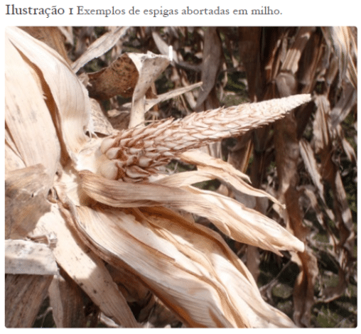Adicionalmente, condições ambientais antes do florescimento podem afetar a formação dos grãos no ápice da espiga. Estes grãos são os mais suscetíveis a condições de estresse.