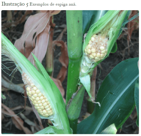 Espiga anã é caracterizada por ser menor que uma espiga de milho considerada “normal”. O número final de grãos por fileira é mais afetado que o número de fileiras por espiga, o qual pode ser similar ao de uma espiga normal.
