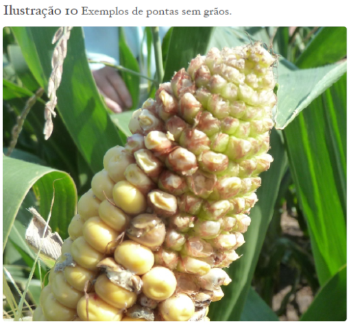 A falta de grãos na ponta das espigas de milho é evidente após o processo de polinização e está relacionado com a falha no estabelecimento dos grãos no ápice da espiga.