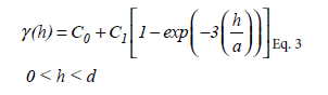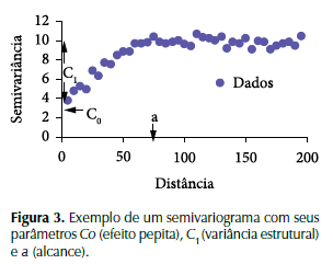 Os parâmetros C0, C1 e a são, respectivamente, o efeito pepita, a variância estrutural e o alcance e são usados para ajustar o modelo ao semivariograma. Gráfico do semivariograma é uma série de pontos discretos para a qual, uma função contínua deve ser ajustada.