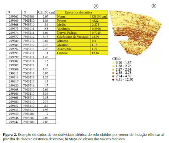 Entre as aplicações da geoestatística voltadas para prover informações em suporte da agricultura estão a caracterização e a modelagem espacial e temporal, das quais resultam a produção de mapas precisos para bases de informação da área de produção (McBRATNEY et al., 2005).