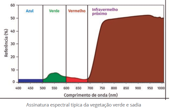 A técnica de mapeamento da vegetação se baseia no conhecimento do comportamento espectral das plantas. A vegetação verde e saudável absorve a energia solar de forma intensa na região espectral do vermelho e reflete fortemente na região do infravermelho próximo. A operação aritmética dessas duas bandas espectrais é bastante utilizada na determinação dos chamados índices de biomassa ou de vegetação.