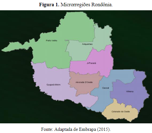 Na Figura 1 a seguir são apresentadas as microrregiões de Rondônia, para melhor identificação e visualização da localidade onde fora procedido o estudo.