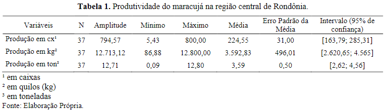 Com isso, após apresentação de algumas das principais características produtivas no cultivo do maracujá na região centralde Rondônia –Amazonia Ocidental –conforme dados apresentados no quadro 1, na sequênciaé procedido a avaliação da produtividade do maracujá naregião.