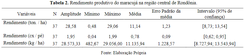 3.2 Avaliação da produtividade do maracujá na região central de Rondônia, Amazônia Ocidental/Brasil