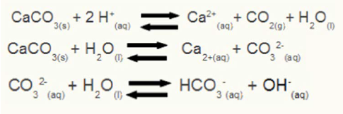 A reação destes materiais é lenta e gradual. O carbonato é uma base fraca, a formação do OH- é gradual e a reação é mais lenta com H+ do solo. A elevação do pH ocorre nas proximidades de onde o calcário foi aplicado.