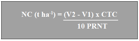 PRNT = PN x RE (%)/100. Quanto menor o PRNT, maior é a dose de calcário a ser usada.