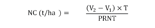 Para solos com histórico de aplicação de calcário em superfície, a amostragem do solo deve ser realizada de 0 cm – 10 cm e de 10 cm – 20 cm de profundidade. O cálculo da NC deve ser feito com os valores médios das duas profundidades. Recomenda-se utilizar as mesmas fórmulas de cálculo do item anterior.