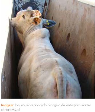 Se o bovino precisar ver algo claramente, é necessário que o objeto esteja diretamente à sua frente. É por esse motivo que viram ou abaixam a cabeça para encarar o manejador, objetos ou variações no ambiente. A altura do desembarcadouro, da entrada do caminhão ou um ralo no corredor do frigorífico são exemplos de alterações no piso que fazem com que os bovinos utilizem a visão binocular.