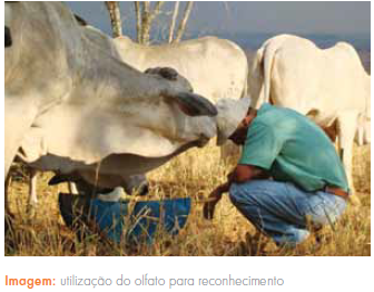 As vacas identificam seus bezerros pelo cheiro, embora o reconhecimento pela visão e som se torne mais importante conforme o crescimento dos bezerros. Os bovinos adultos continuarão a cheirar uns aos outros durante o comportamento social.