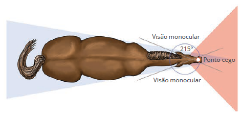 Nenhum outro mamífero apresenta olhos tão grandes e posicionados um em cada lado da cabeça, o que lhes permite alcançar uma visão independente em cada olho, processando diferentes imagens em seu cérebro. Esses animais podem usar os focos de cada olho de maneira independente (visão monocular) ou também os dois olhos juntos (visão binocular). A visão binocular permite que julguem distâncias e abrange um campo relativamente estreito de visão.