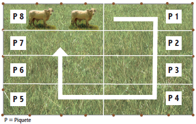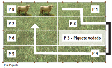 Neste método de pastejo, as pastagens são divididas em piquetes nos quais os animais são frequentemente movimentados, observando-se períodos de ocupação e de descanso.