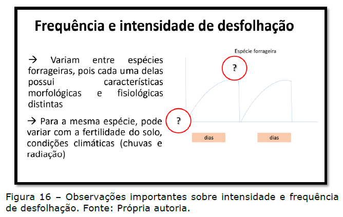 Em pastos manejados sob lotação intermitente, a frequência de desfolhação é determinada pelo intervalo com que os animais retornam ao mesmo piquete.