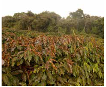 Cafezais em formação, quando muito infestados pelo mato alto exercendo proteção do sol, quando capinados ou roçados, sofrem mais severamente, devido à exposição súbita aos raios solares.