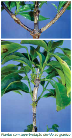 Outro problema decorrente das injúrias em hastes e troncos é a superbrotação que sobrevém de forma totalmente aleatória, nas partes afetadas, ocasionando uma desestruturação na arquitetura das plantas.